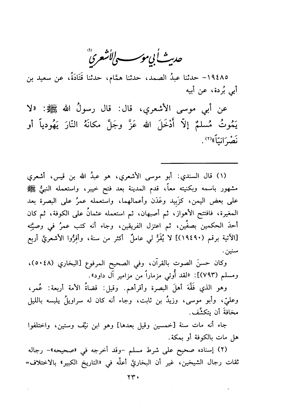 حَدِيثُ أَبِي مُوسَى الْأَشْعَرِيِّ (١)