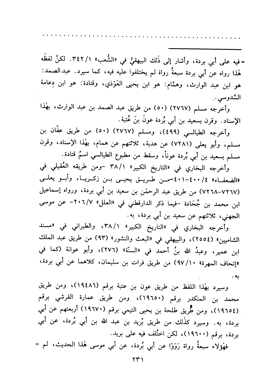 = فيه على أبي بردة، وأشار إلى ذلك البيهقي في "الشُّعب" ١/٣٤٢. لكنَّ لفظَه هذا رواه عن أبي بردة سبعةُ رواة لم يختلفوا عليه فيه، كما سيرد. عبد الصمد: هو ابن عبد الوارث، وهمَّام: هو ابن يحيى العَوْذي، وقتادة: هو ابن دِعامة السَّدوسي..