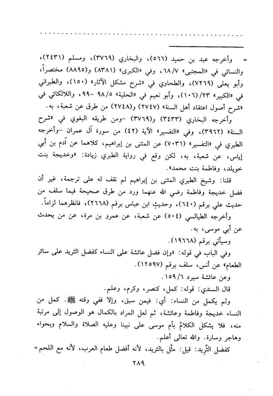 وفي الباب في قوله: "وإن فضل عائشة على النساء كفضل الثريد على سائر الطعام" عن أنس، سلف برقم (١٢٥٩٧) .