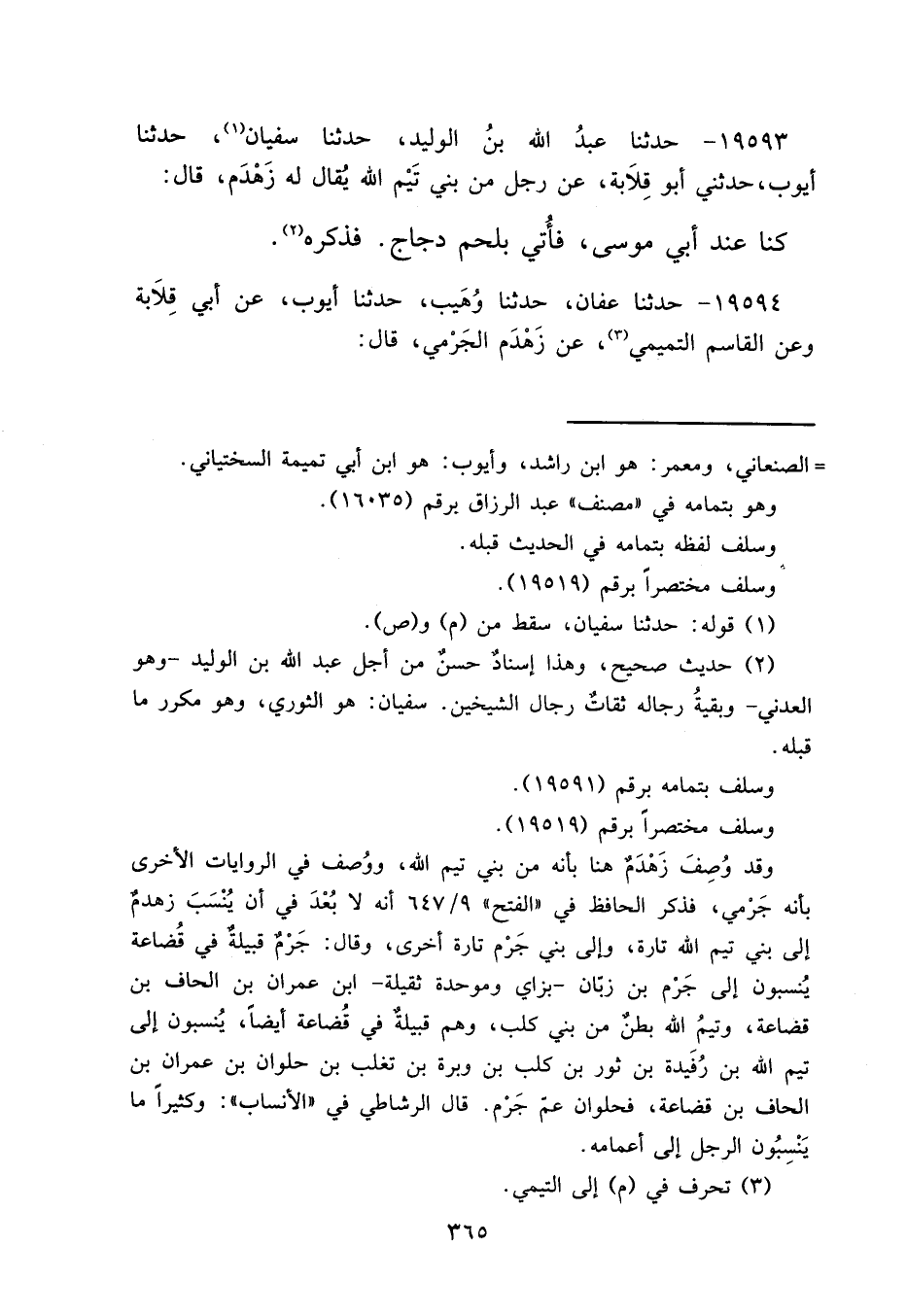 ١٩٥٩٤ - حَدَّثَنَا عَفَّانُ، حَدَّثَنَا وُهَيْبٌ، حَدَّثَنَا أَيُّوبُ، عَنْ أَبِي قِلَابَةَ، وَعَنْ الْقَاسِمِ التَّمِيمِيِّ، (٣) عَنْ زَهْدَمٍ الْجَرْمِيِّ قَالَ: