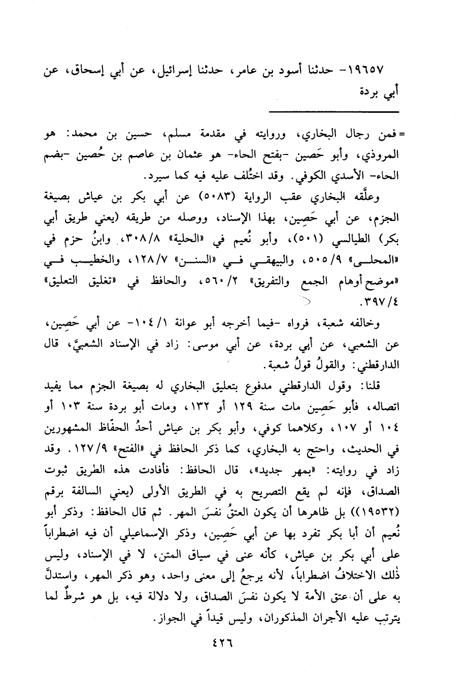 = فمن رجال البخاري، وروايته في مقدمة مسلم، حسين بن محمد: هو المروذي، وأبو حَصين- بفتح الحاء- هو عثمان بن عاصم بن حُصين- بضم الحاء- الأسدي الكوفي. وقد اختُلف عليه فيه كما سيرد.