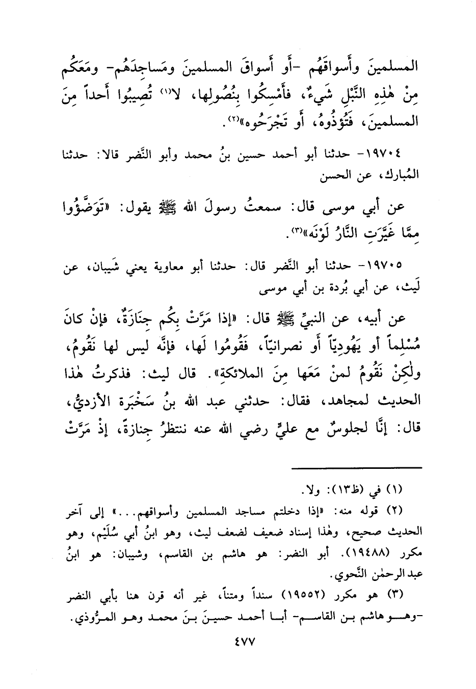 (٣) هو مكرر (١٩٥٥٢) سنداً ومتناً، غير أنه قرن هنا بأبي النضر - وهو هاشم بن القاسم- أبا أحمد حسينَ بنَ محمد وهو المرُّوذي.