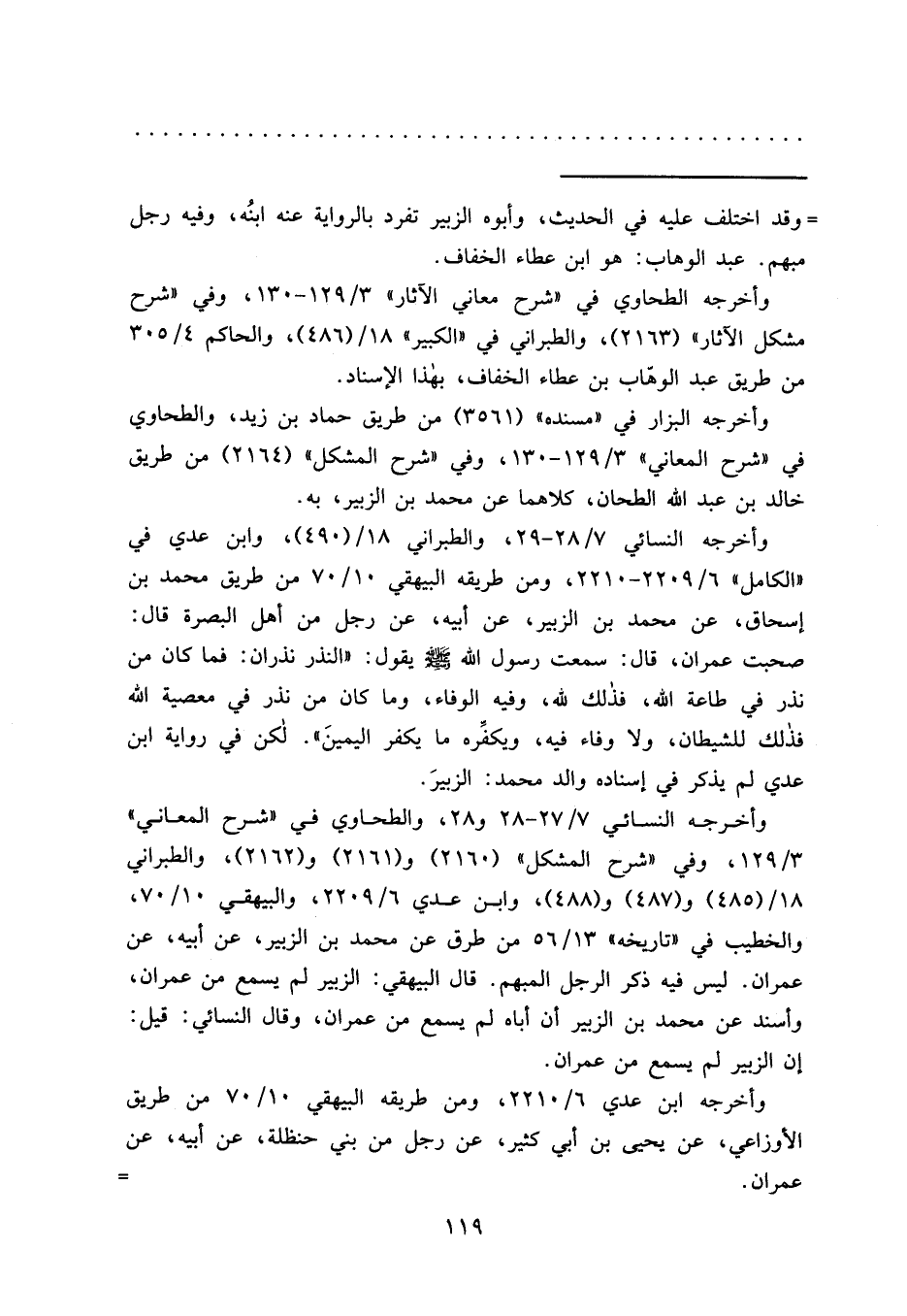 وأخرجه النسائي ٧/٢٧-٢٨ و٢٨، والطحاوي في "شرح المعاني" ٣/١٢٩، وفي "شرح المشكل" (٢١٦٠) و (٢١٦١) و (٢١٦٢) ، والطبراني ١٨/ (٤٨٥) و (٤٨٧) و (٤٨٨) ، وابن عدي ٦/٢٢٠٩، والبيهقي ١٠/٧٠، والخطيب في "تاريخه" ١٣/٥٦ من طرق عن محمد بن الزبير، عن أبيه، عن عمران. ليس فيه ذكر الرجل المبهم. قال البيهقي: الزبير لم يسمع من عمران، وأسند عن محمد بن الزبير أن أباه لم يسمع من عمران، وقال النسائي: قيل: إن الزبير لم يسمع من عمران.