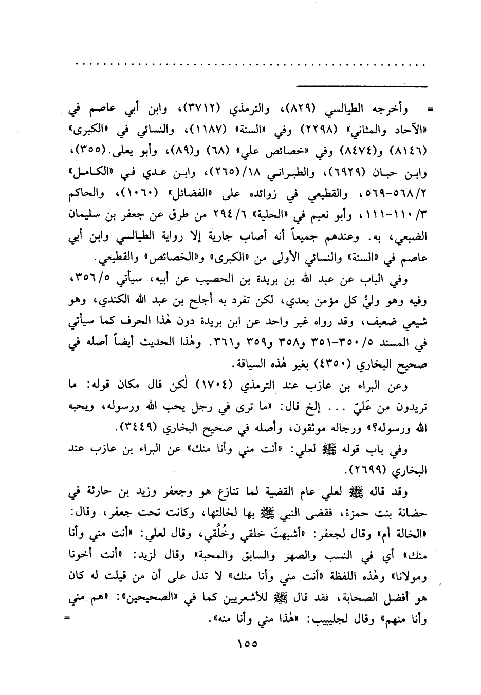 وفي باب قوله صَلَّى اللهُ عَلَيْهِ وَسَلَّمَ لعلي: "أنت مني وأنا منك" عن البراء بن عازب عند البخاري (٢٦٩٩) .