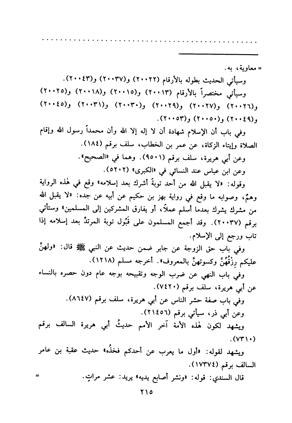 وسيأتي مختصراً بالأرقام (٢٠٠١٣) و (٢٠٠١٥) و (٢٠٠١٨) و (٢٠٠٢٥) و (٢٠٠٢٦) و (٢٠٠٢٧) و (٢٠٠٢٩) و (٢٠٠٣٠) و (٢٠٠٣١) و (٢٠٠٤٥) و (٢٠٠٤٩) و (٢٠٠٥٠) و (٢٠٠٥٣) .