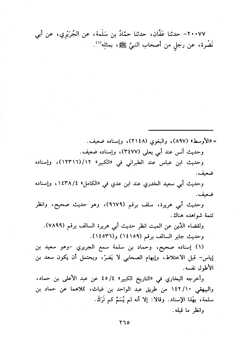 ٢٠٠٧٧ - حَدَّثَنَا عفَانُ، حَدَّثَنَا حَمَّادُ بْنُ سَلَمَةَ، عَنِ الْجُرَيْرِيِّ، عَنْ أَبِي نَضْرَةَ، عَنْ رَجُلٍ مِنْ أَصْحَابِ النَّبِيِّ صَلَّى اللهُ عَلَيْهِ وَسَلَّمَ بِمِثْلِهِ (١)
