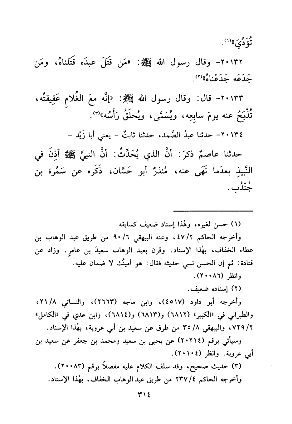 ٢٠١٣٢ - وَقَالَ رَسُولُ اللهِ صَلَّى اللهُ عَلَيْهِ وَسَلَّمَ: " مَنْ قَتَلَ عَبْدَهُ قَتَلْنَاهُ، وَمَنْ جَدَعَهُ جَدَعْنَاهُ " (٢)