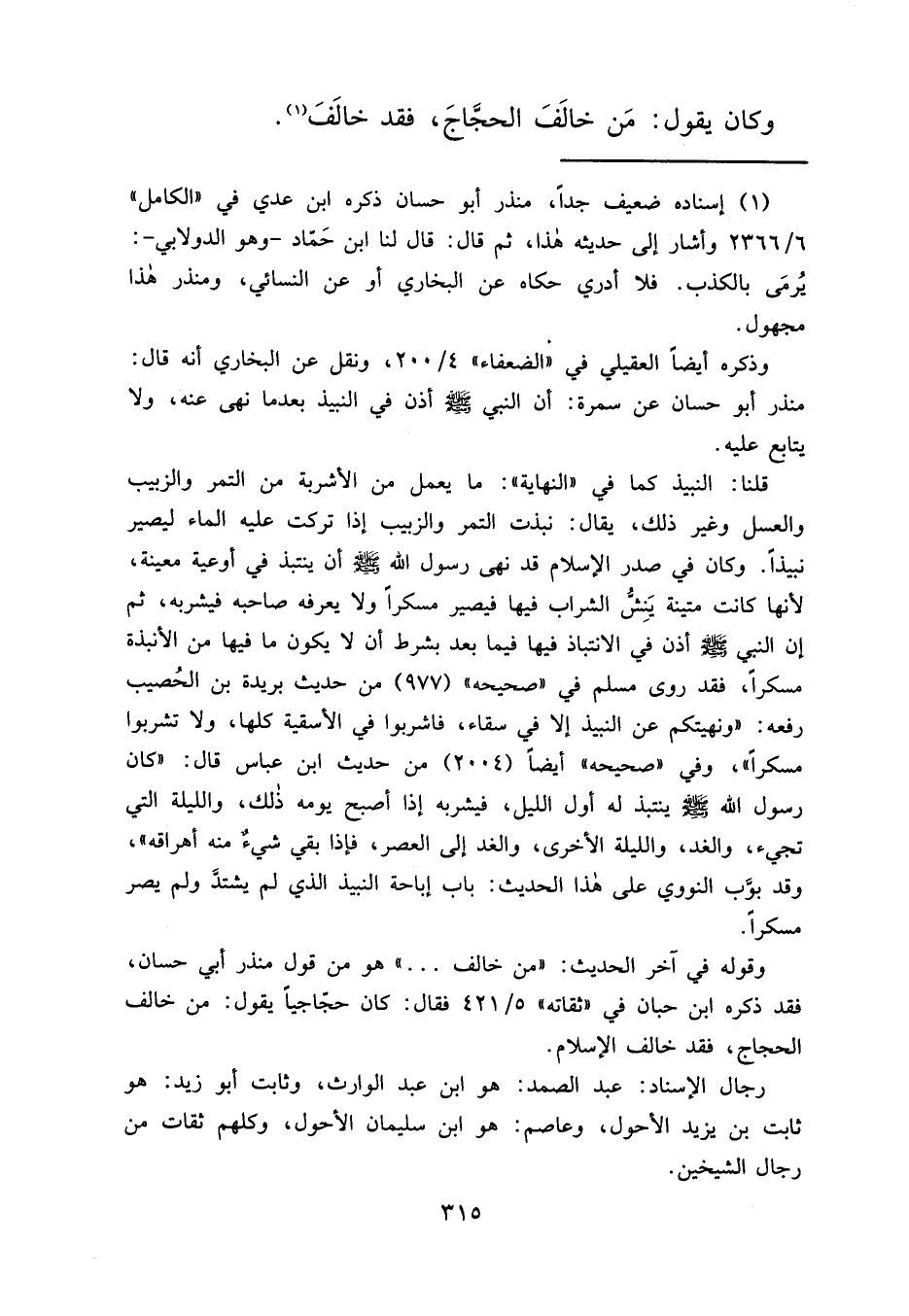 وقوله في آخر الحديث: "من خالف ... " هو من قول منذر أبي حسان، فقد ذكره ابن حبان في "ثقاته" ٥/٤٢١ فقال: كان حجّاجياً يقول: من خالف الحجاج، فقد خالف الإسلام.
