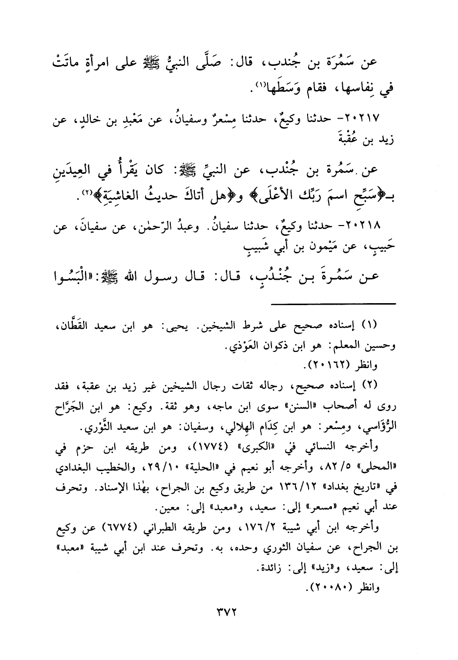 ٢٠٢١٧ - حَدَّثَنَا وَكِيعٌ، حَدَّثَنَا مِسْعَرٌ، وَسُفْيَانُ، عَنْ مَعْبَدِ بْنِ خَالِدٍ، عَنْ زَيْدِ بْنِ عُقْبَةَ، عَنْ سَمُرَةَ بْنِ جُنْدُبٍ، عَنِ النَّبِيِّ صَلَّى اللهُ عَلَيْهِ وَسَلَّمَ: " كَانَ يَقْرَأُ فِي الْعِيدَيْنِ بِسَبِّحِ اسْمَ رَبِّكَ الْأَعْلَى، وَهَلْ أَتَاكَ حَدِيثُ الْغَاشِيَةِ " (٢)