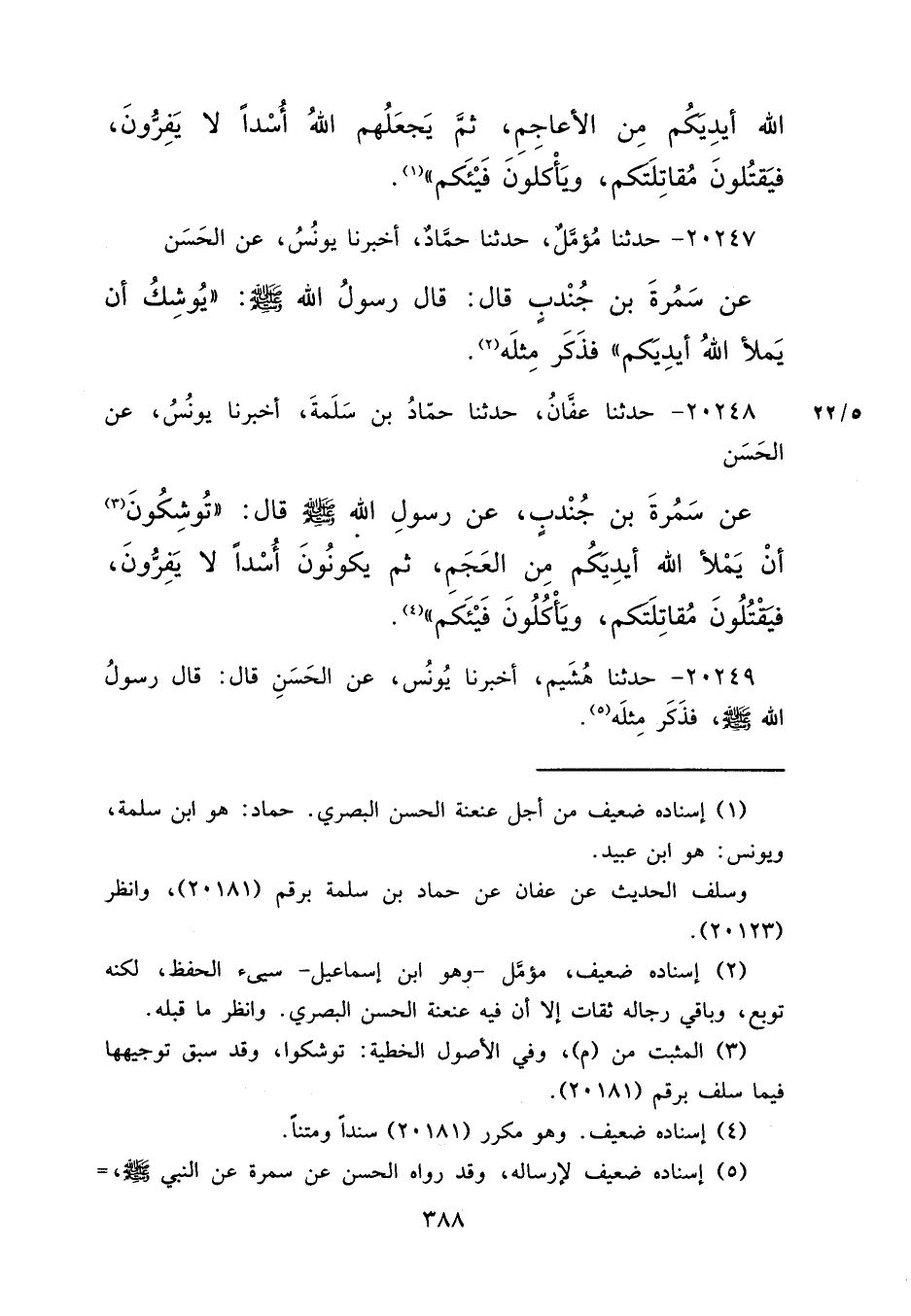 (٤) إسناده ضعيف. وهو مكرر (٢٠١٨١) سنداً ومتناً.