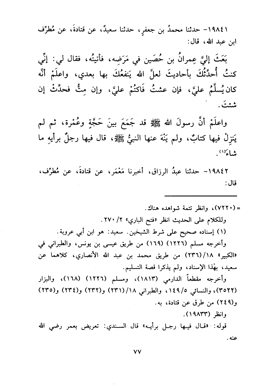 ١٩٨٤٢ - حَدَّثَنَا عَبْدُ الرَّزَّاقِ، أَخْبَرَنَا مَعْمَرٌ، عَنْ قَتَادَةَ، عَنْ مُطَرِّفٍ قَالَ: