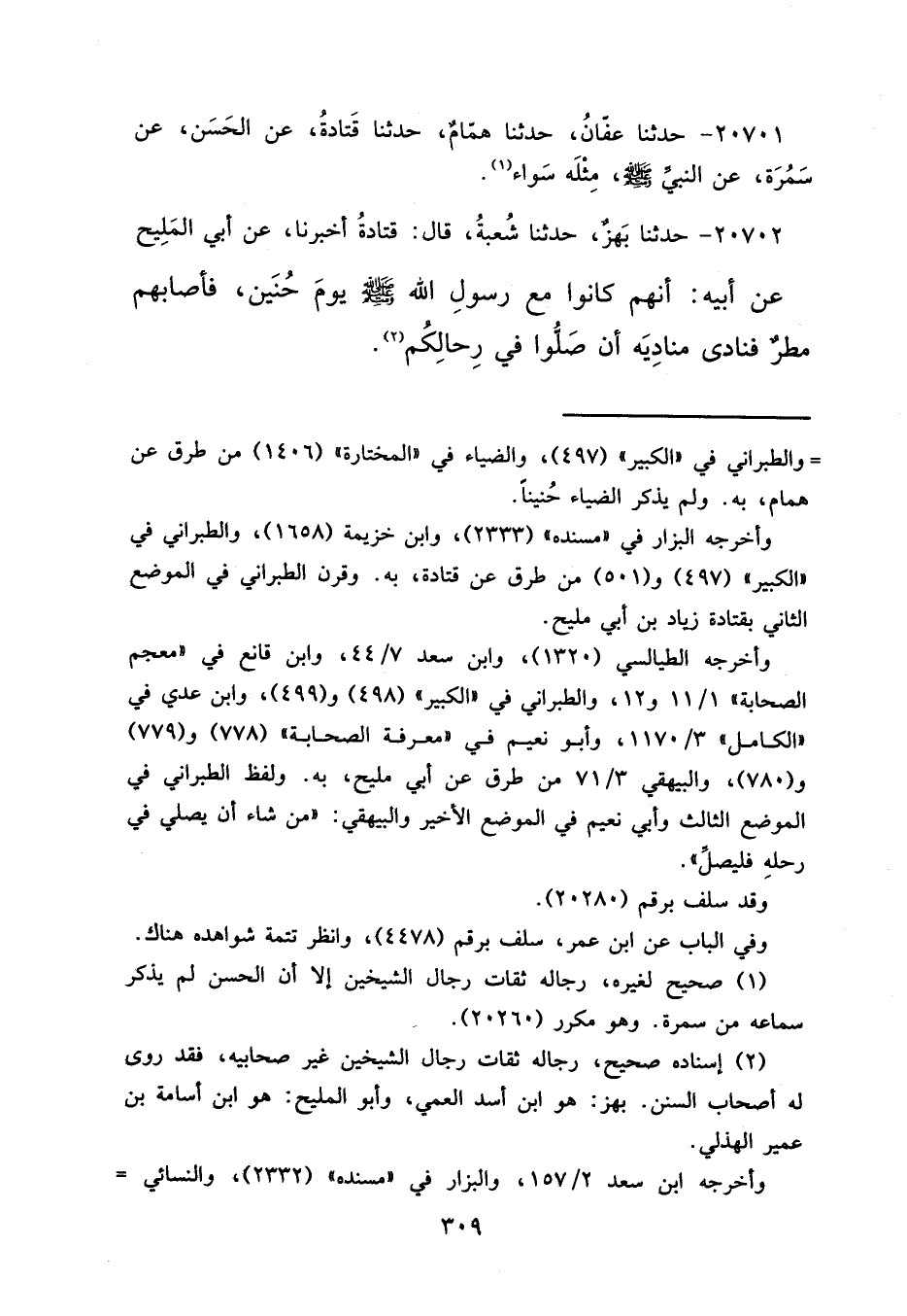 (٢) إسناده صحيح، رجاله ثقات رجال الشيخين غير صحابيه، فقد روى له أصحاب السنن. بهز: هو ابن أسد العمي، وأبو المليح: هو ابن أسامة بن عمير الهذلي.