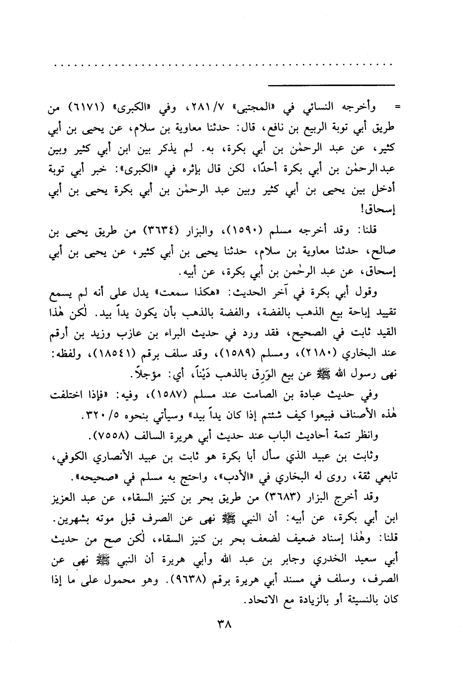 وقد أخرج البزار (٣٦٨٣) من طريق بحر بن كنيز السقاء، عن عبد العزيز ابن أبي بكرة، عن أبيه: أن النبي صَلَّى اللهُ عَلَيْهِ وَسَلَّمَ نهى عن الصرف قبل موته بشهرين.