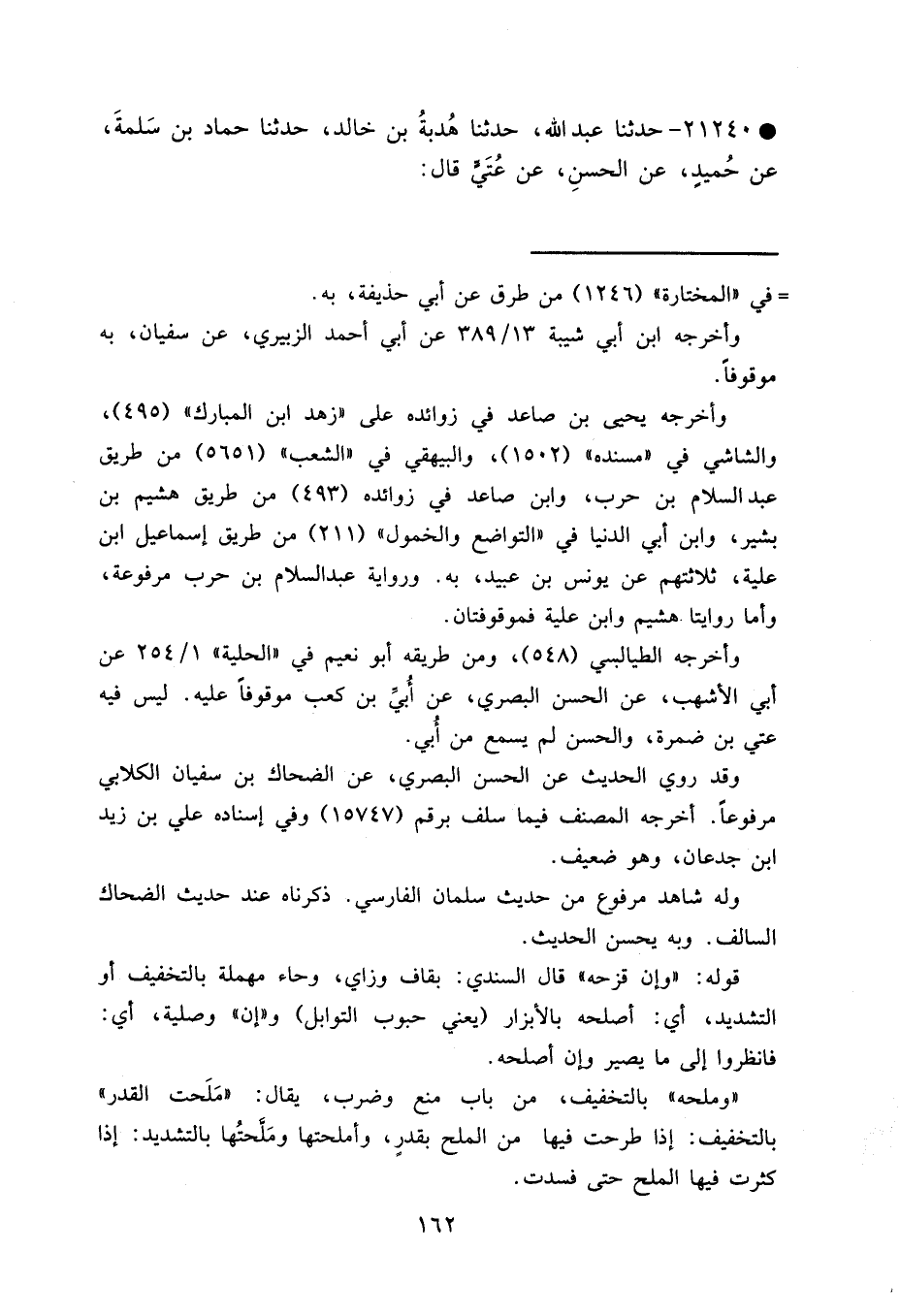 • ٢١٢٤٠ - حَدَّثَنَا عَبْدُ اللهِ، حَدَّثَنَا هُدْبَةُ بْنُ خَالِدٍ، حَدَّثَنَا حَمَّادُ بْنُ سَلَمَةَ، عَنْ حُمَيْدٍ، عَنْ الْحَسَنِ، عَنْ عُتَيٍّ، قَالَ: