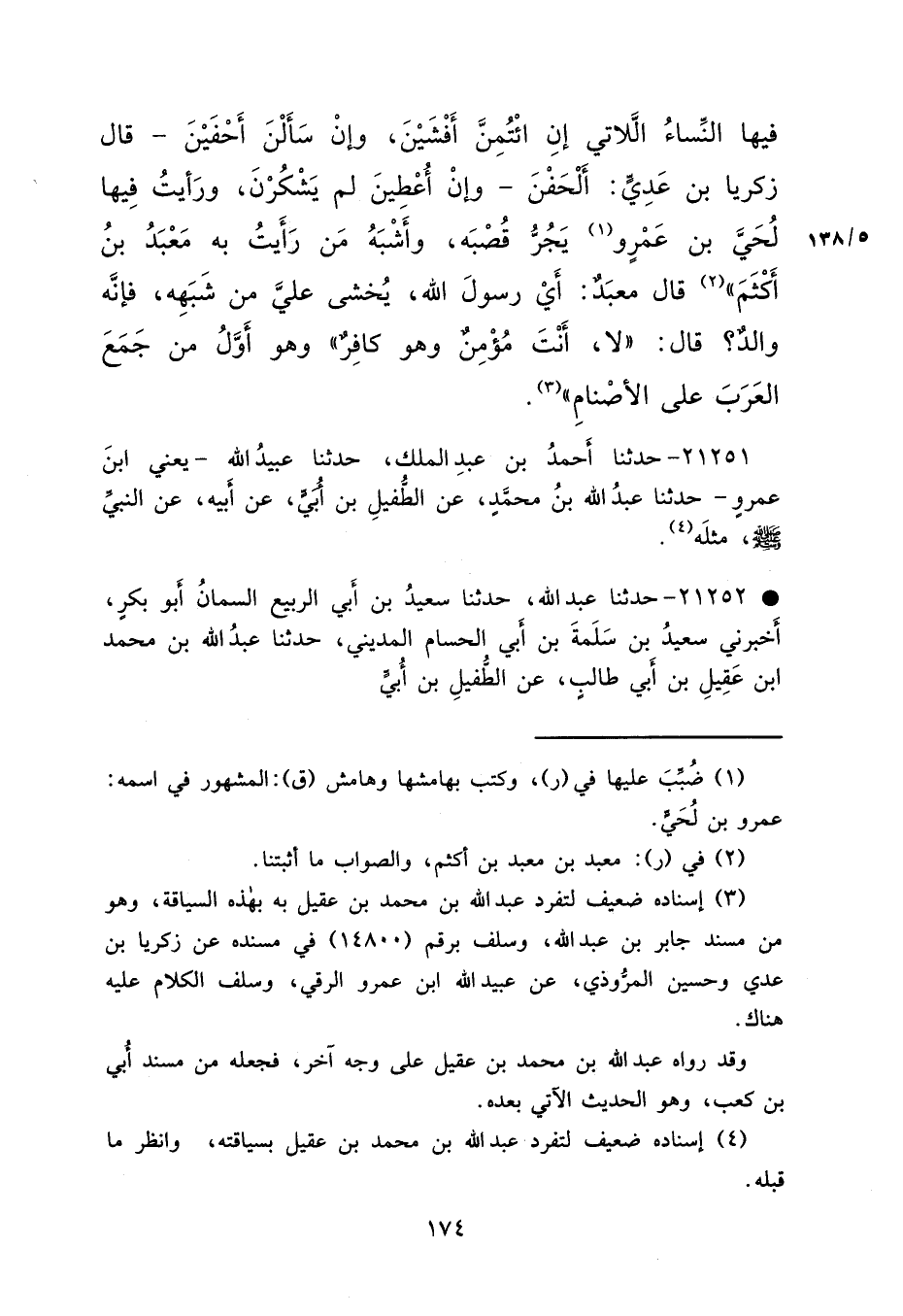 ٢١٢٥١ - حَدَّثَنَا أَحْمَدُ بْنُ عَبْدِ الْمَلِكِ، حَدَّثَنَا عُبَيْدُ اللهِ يَعْنِي ابْنَ عَمْرٍو، حَدَّثَنَا عَبْدُ اللهِ بْنُ مُحَمَّدٍ، عَنِ الطُّفَيْلِ بْنِ أُبَيٍّ، عَنْ أَبِيهِ، عَنِ النَّبِيِّ صَلَّى اللهُ عَلَيْهِ وَسَلَّمَ، مِثْلَهُ (٤)