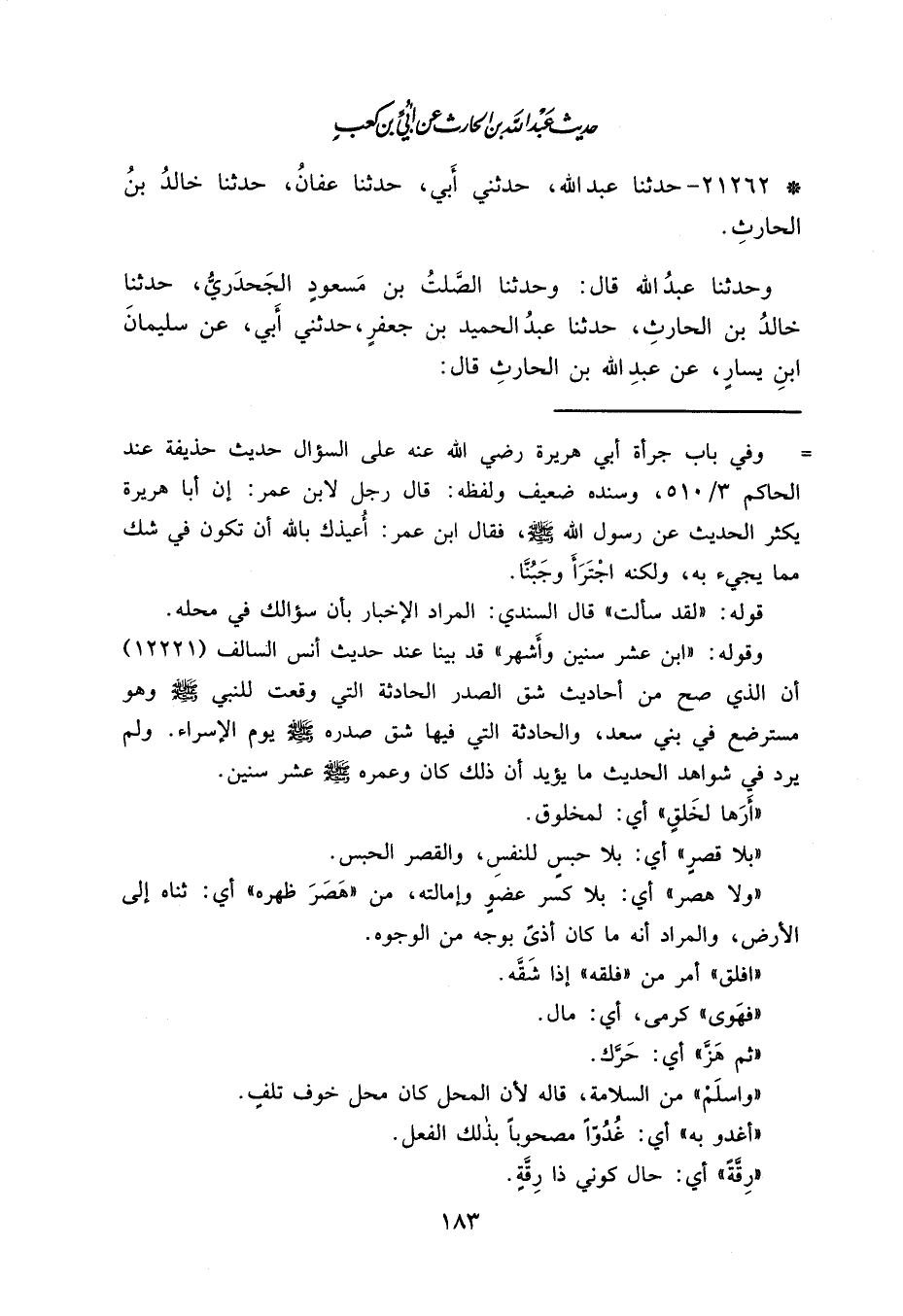 * ٢١٢٦٢ - حَدَّثَنَا عَفَّانُ، حَدَّثَنَا خَالِدُ بْنُ الْحَارِثِ، وَحَدَّثَنَا عَبْدُ اللهِ، قَالَ: وحَدَّثَنَا الصَّلْتُ بْنُ مَسْعُودٍ الْجَحْدَرِيُّ، حَدَّثَنَا خَالِدُ بْنُ الْحَارِثِ، حَدَّثَنَا عَبْدُ الْحَمِيدِ بْنُ جَعْفَرٍ، حَدَّثَنِي أَبِي، عَنْ سُلَيْمَانَ بْنِ يَسَارٍ، عَنْ عَبْدِ اللهِ بْنِ الْحَارِثِ، قَالَ: