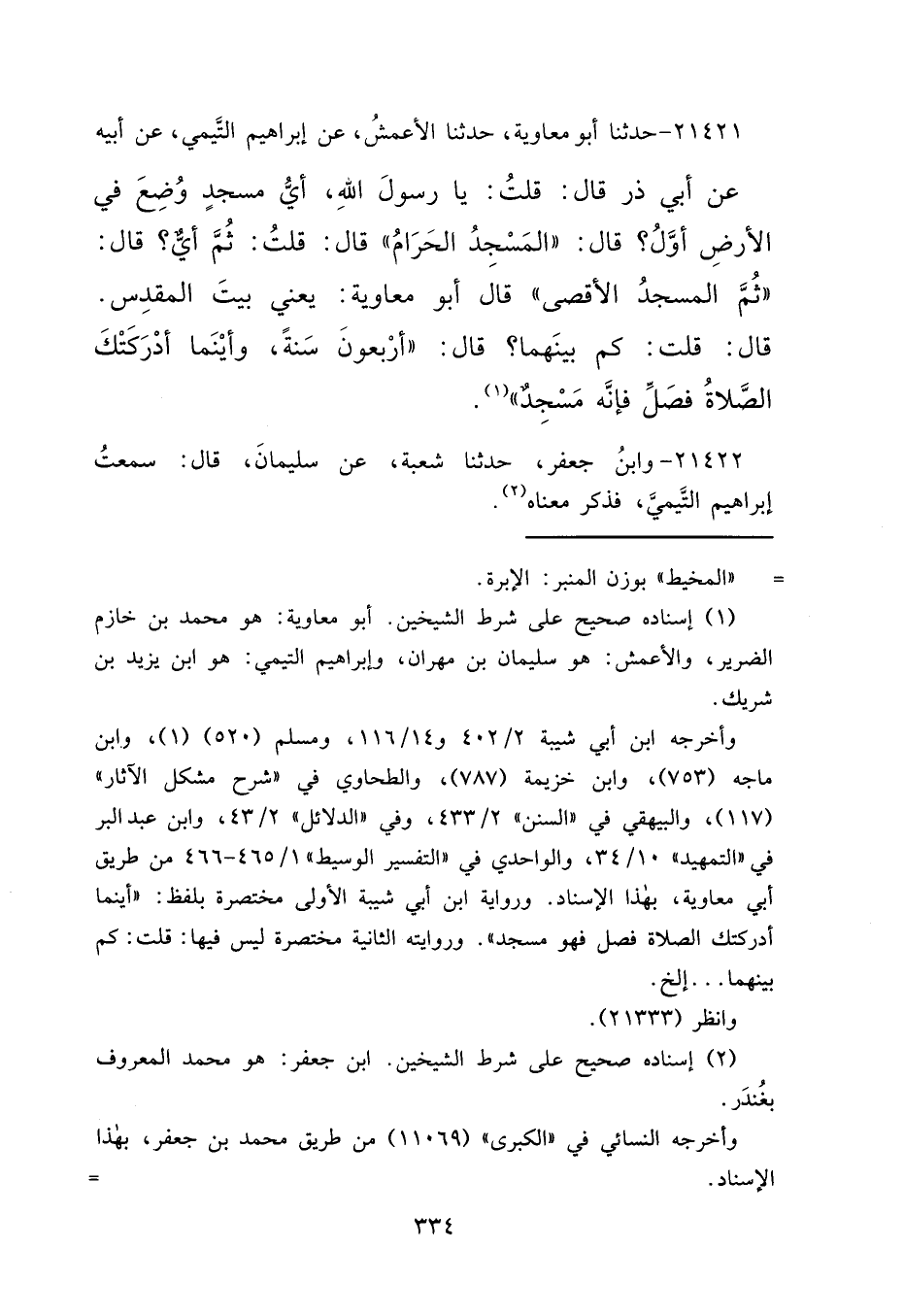(١) إسناده صحيح على شرط الشيخين. أبو معاوية: هو محمد بن خازم الضرير، والأعمش: هو سليمان بن مهران، وإبراهيم التيمي: هو ابن يزيد بن شريك.