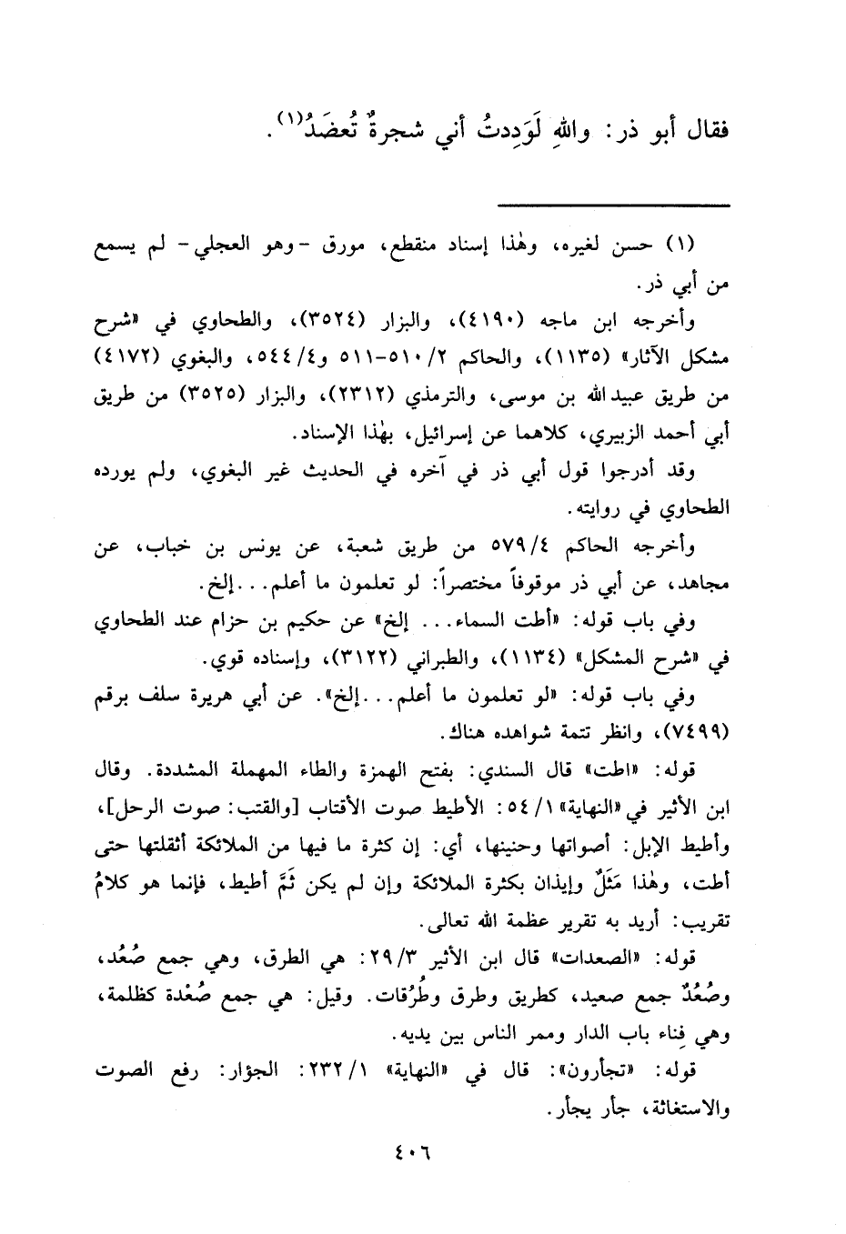 فَقَالَ أَبُو ذَرٍّ: "وَاللهِ لَوَدِدْتُ أَنِّي شَجَرَةٌ تُعْضَدُ " (١)