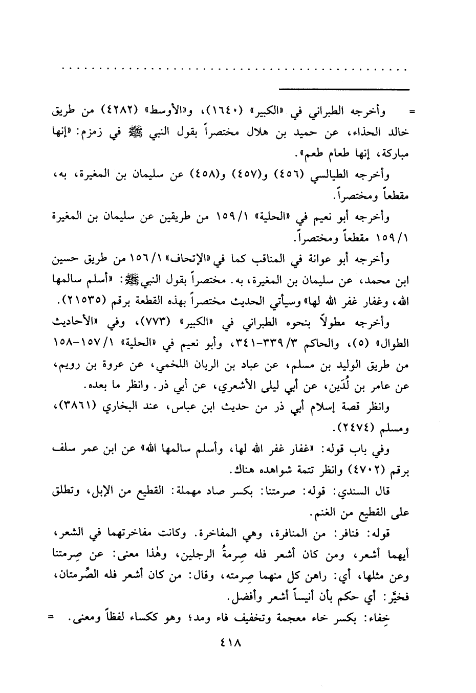 =وأخرجه الطبراني في "الكبير" (١٦٤٠) ، و"الأوسط" (٤٢٨٢) من طريق خالد الحذاء، عن حميد بن هلال مختصراً بقول النبي صَلَّى اللهُ عَلَيْهِ وَسَلَّمَ في زمزم: "إنها مباركة، إنها طعام طعم".