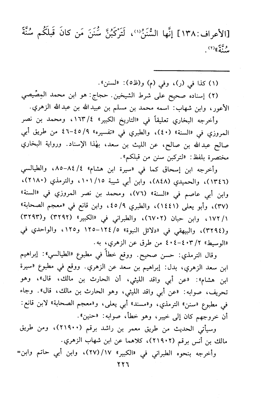 [الأعراف: ١٣٨] إِنَّهَا السُّنَنُ، (١) لَتَرْكَبُنَّ سُنَنَ مَنْ كَانَ قَبْلَكُمْ سُنَّةً سُنَّةً " (٢)