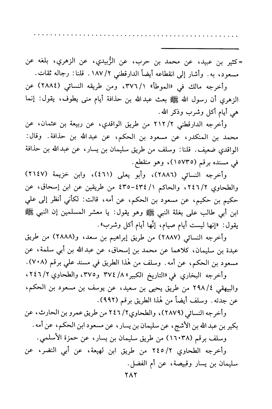 وأخرجه النسائي (٢٨٨٦) ، وأبو يعلى (٤٦١) ، وابن خزيمة (٢١٤٧) والطحاوي ٢/٢٤٦، والحاكم ١/٤٣٤-٤٣٥ من طريقين عن ابن إسحاق، عن حكيم بن حكيم، عن مسعود بن الحكم، عن أمه، قالت: لكأني أنظر إلى علي ابن أبي طالب على بغلة النبي صَلَّى اللَّه عَلَيْهِ وَسَلَّمَ وهو يقول: يا معشر المسلمين إن النبي صَلَّى اللَّه عَلَيْهِ وَسَلَّمَ يقول: "إنها ليست أيام صيام، إنَّها أيام أكل وشرب".