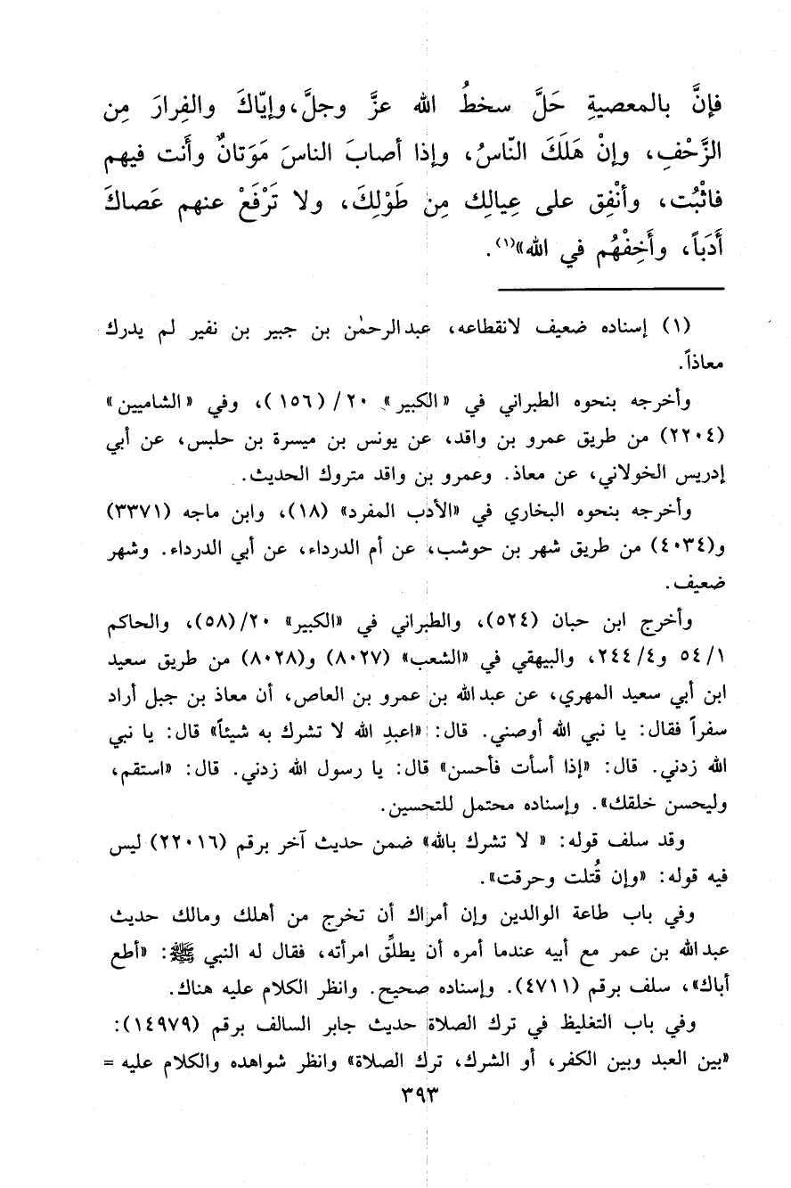 (١) إسناده ضعيف لانقطاعه، عبد الرحمن بن جبير بن نفير لم يدرك معاذاً.