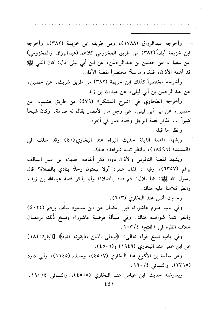 = وأخرجه عبد الرزاق (١٧٨٨) ، ومن طريقه ابن خزيمة (٣٨٢) ، وأخرجه ابن خزيمة أيضاً (٣٨٢) من طريق المخزومي كلاهما (عبد الرزاق والمخزومي) عن سفيان، عن حصين بن عبد الرحمن، عن ابن أبي ليلى قال: كان النبي صَلَّى اللهُ عَلَيْهِ وَسَلَّمَ قد أهمه الأذان، فذكره مرسلاً مختصراً بقصة الأذان.