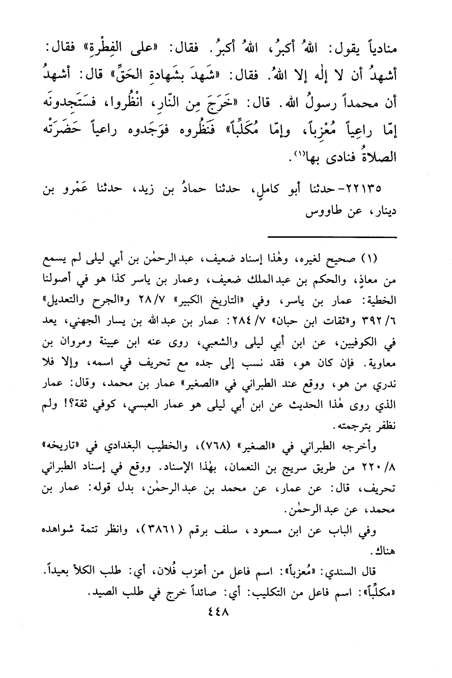 ٢٢١٣٥ - حَدَّثَنَا أَبُو كَامِلٍ، حَدَّثَنَا حَمَّادُ بْنُ زَيْدٍ، حَدَّثَنَا عَمْرُو بْنُ دِينَارٍ، عَنْ طَاوُسٍ،