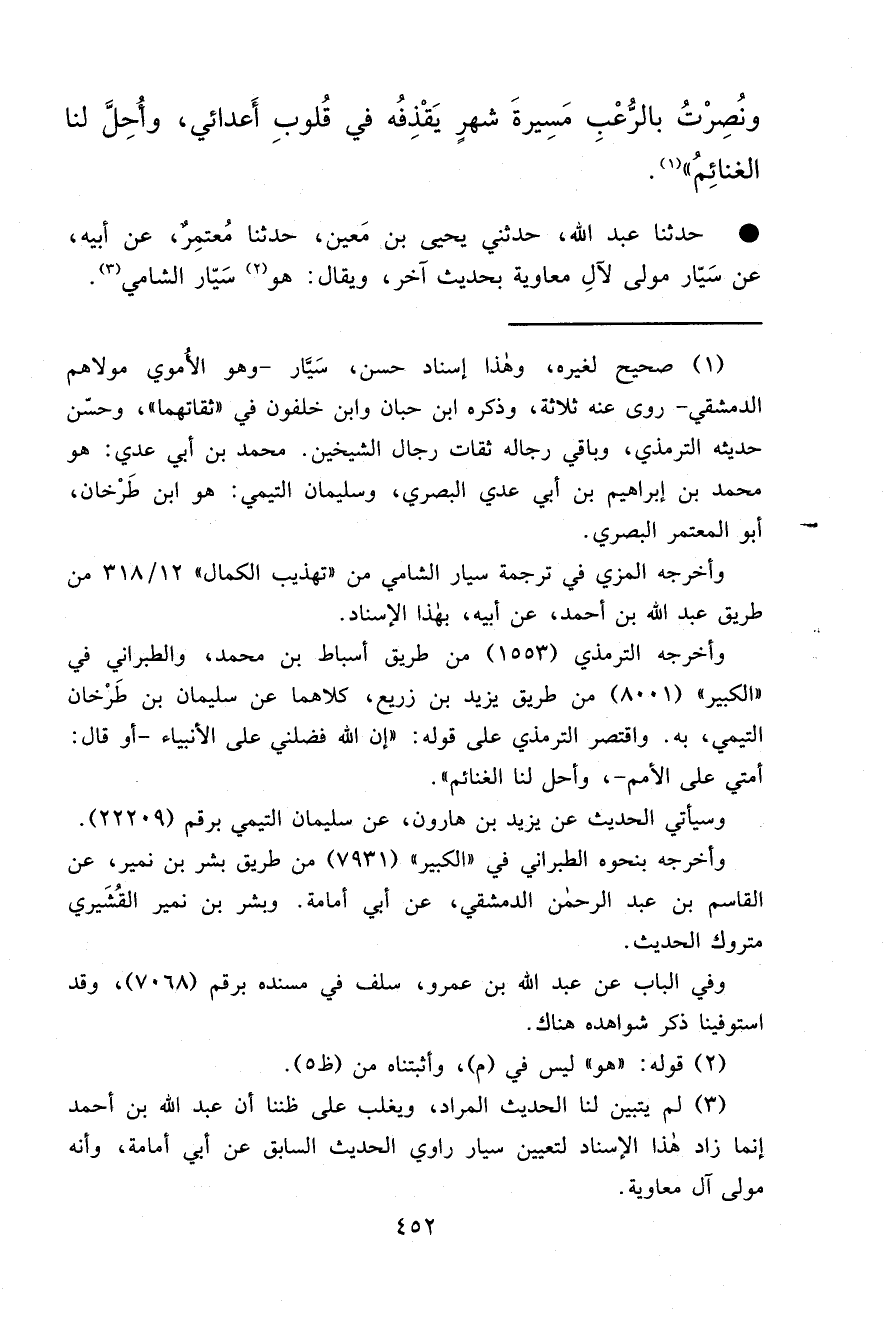 • حَدَّثَنَا عَبْدُ اللهِ، حَدَّثَنِي يَحْيَى بْنُ مَعِينٍ، حَدَّثَنَا مُعْتَمِرٌ، عَنْ أَبِيهِ، عَنْ سَيَّارٍ مَوْلًى لِآلِ مُعَاوِيَةَ بِحَدِيثٍ آخَرَ، وَيُقَالُ هُوَ (٢) سَيَّارٌ الشَّامِيُّ (٣)