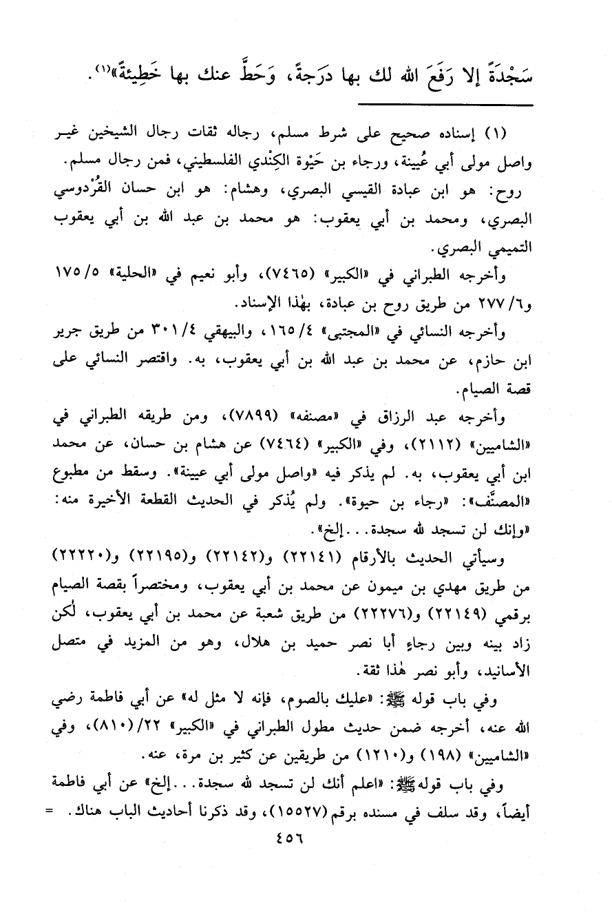 سَجْدَةً إِلَّا رَفَعَ اللهُ لَكَ بِهَا دَرَجَةً، وَحَطَّ عَنْكَ بِهَا خَطِيئَةً " (١)