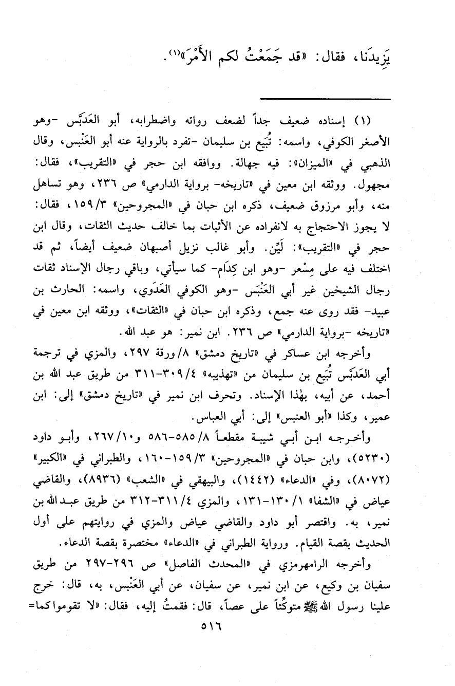 يَزِيدَنَا. فَقَالَ: " قَدْ جَمَعْتُ لَكُمُ الْأَمْرَ " (١)