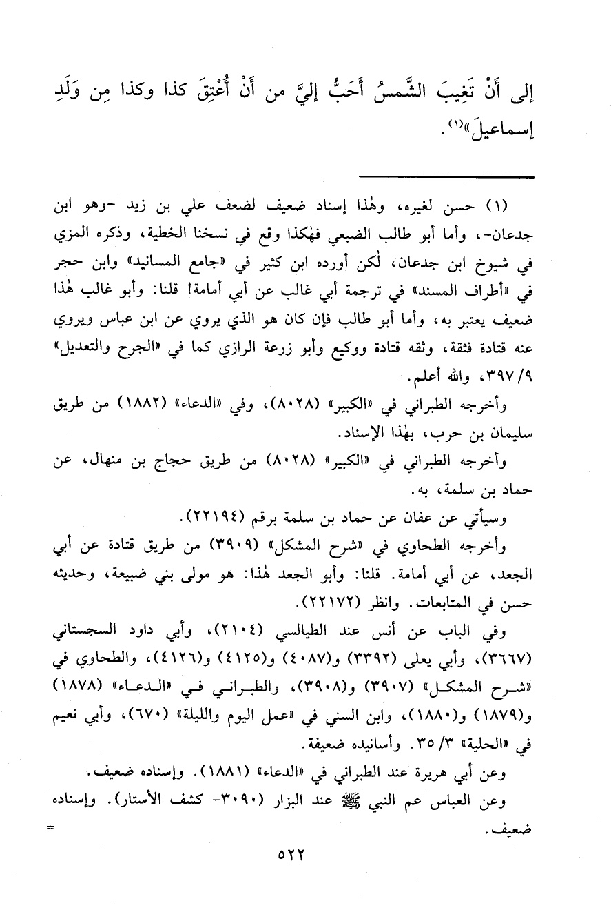إِلَى أَنْ تَغِيبَ الشَّمْسُ أَحَبُّ إِلَيَّ مِنْ أَنْ أَعْتِقَ كَذَا وَكَذَا مِنْ وَلَدِ إِسْمَاعِيلَ " (١)