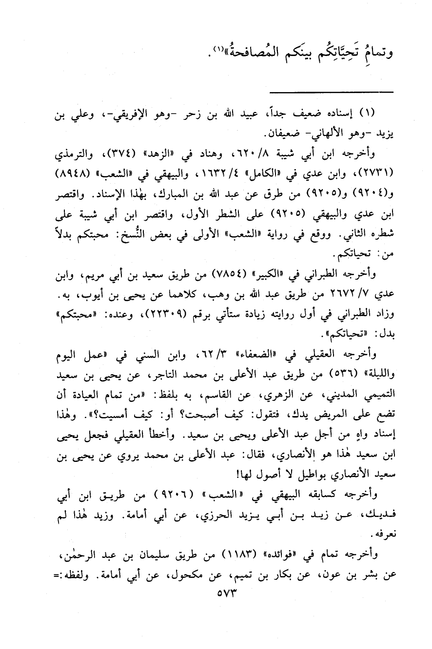 وَتَمَامُ تَحِيَّاتِكُمْ بَيْنَكُمُ الْمُصَافَحَةُ " (١)