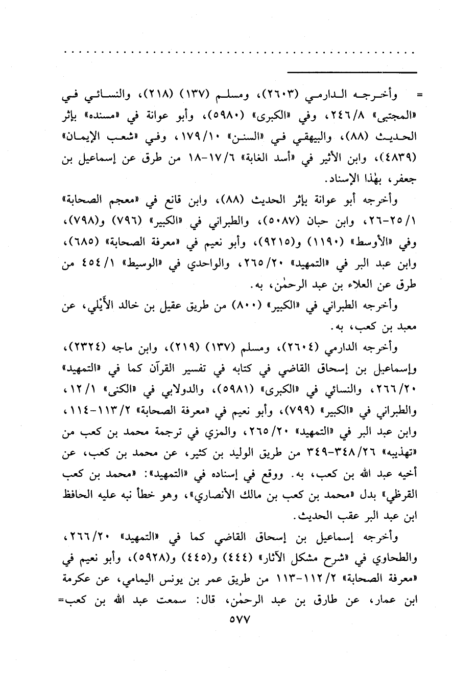 وأخرجه الدارمي (٢٦٠٤) ، ومسلم (١٣٧) (٢١٩) ، وابن ماجه (٢٣٢٤) ، وإسماعيل بن إسحاق القاضي في كتابه في تفسير القرآن كما في "التمهيد" ٢٠/٢٦٦، والنسائي في "الكبرى" (٥٩٨١) ، والدولابي في "الكنى" ١/١٢، والطبراني في "الكبير" (٧٩٩) ، وأبو نعيم في "معرفة الصحابة" ٢/١١٣-١١٤، وابن عبد البر في "التمهيد" ٢٠/٢٦٥، والمزي في ترجمة محمد بن كعب من