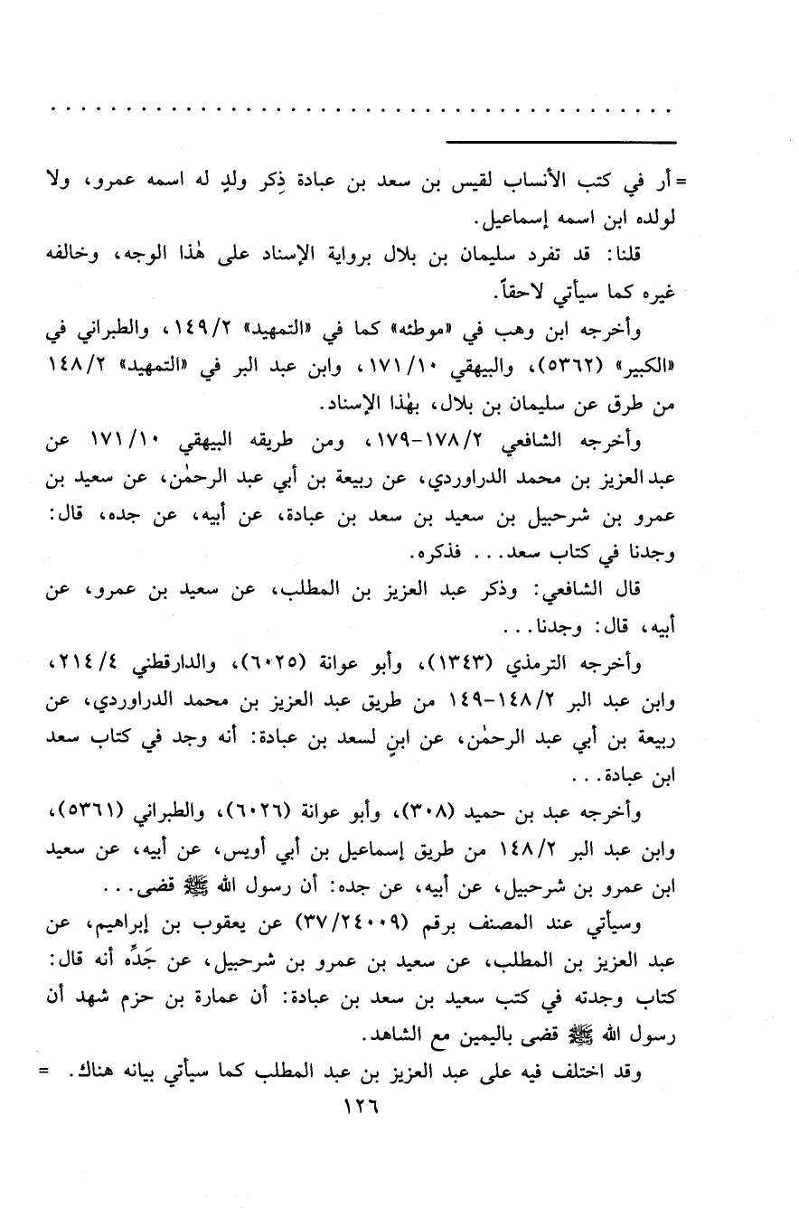 وأخرجه الترمذي (١٣٤٣) ، وأبو عوانة (٦٠٢٥) ، والدارقطني ٤/٢١٤، وابن عبد البر ٢/١٤٨-١٤٩ من طريق عبد العزيز بن محمد الدراوردي، عن ربيعة بن أبي عبد الرحمن، عن ابن سعد بن عبادة: أنه وجد في كتاب سعد ابن عبادة ...