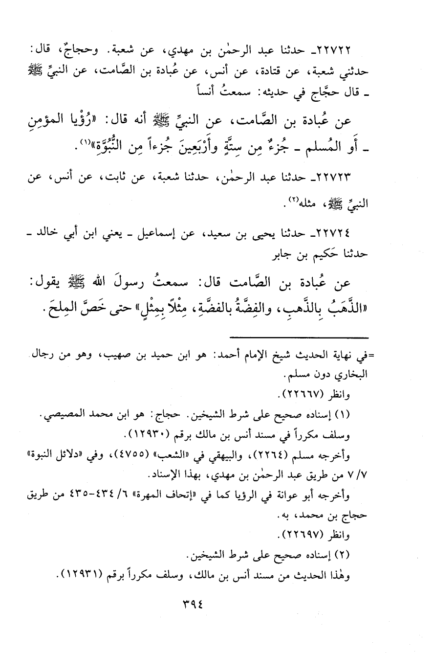 ٢٢٧٢٣ - حَدَّثَنَا عَبْدُ الرَّحْمَنِ، حَدَّثَنَا شُعْبَةُ، عَنْ ثَابِتٍ، عَنْ أَنَسٍ، عَنِ النَّبِيِّ صَلَّى اللهُ عَلَيْهِ وَسَلَّمَ مِثْلَهُ (٢)