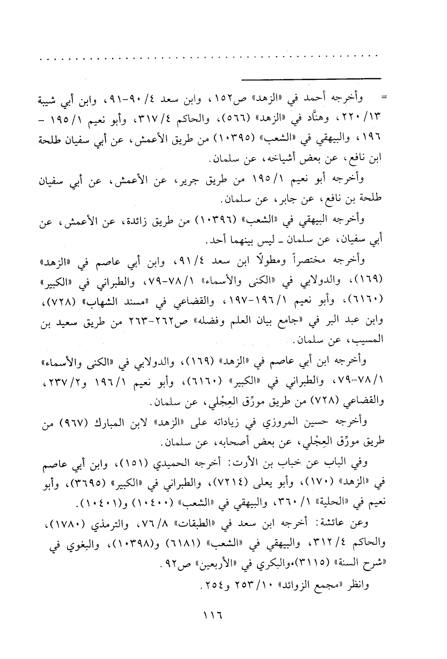 وأخرجه حسين المروزي في زياداته على "الزهد" لابن المبارك (٩٦٧) من طريق مورِّق العِجْلي، عن بعض أصحابه، عن سلمان.