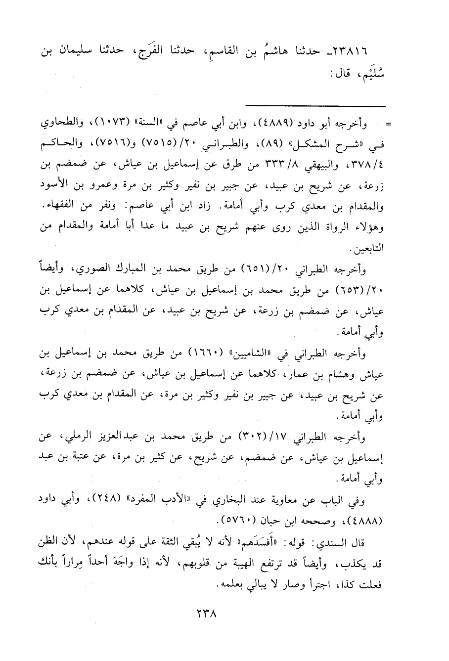 ٢٣٨١٦ - حَدَّثَنَا هَاشِمُ بْنُ الْقَاسِمِ، حَدَّثَنَا الْفَرَجُ، حَدَّثَنَا سُلَيْمَانُ بْنُ سُلَيْمٍ، قَالَ: