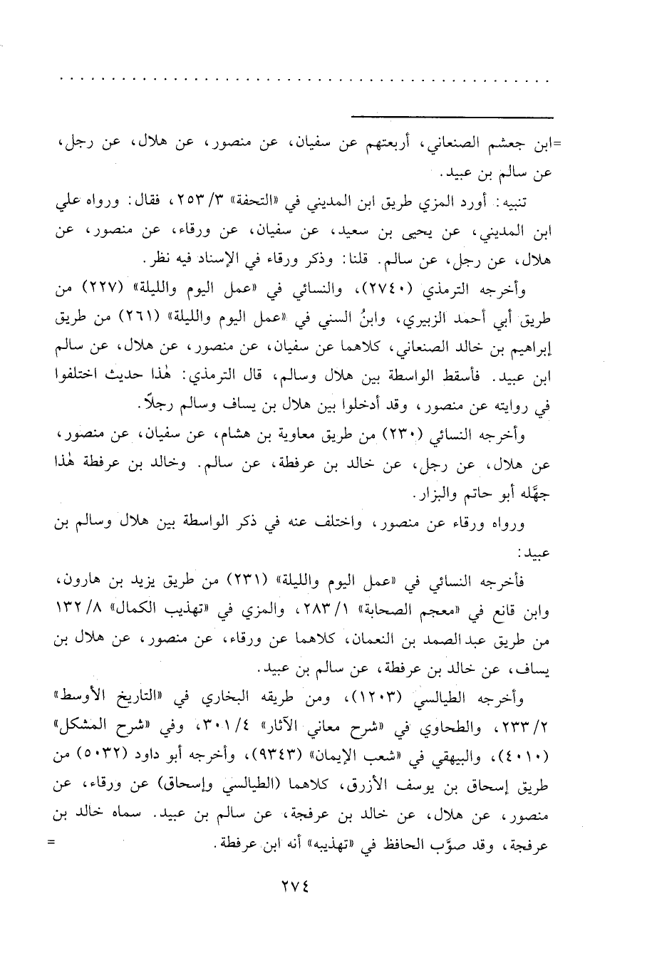 تنبيه: أورد المزي طريق ابن المديني في "التحفة" ٣/٢٥٣، فقال. ورواه علي ابن المديني، عن يحيى بن سعيد، عن سفيان، عن ورقاء، عن منصور، عن هلال، عن رجل، عن سالم. قلنا: وذكر ورقاء في الإسناد فيه نظر.