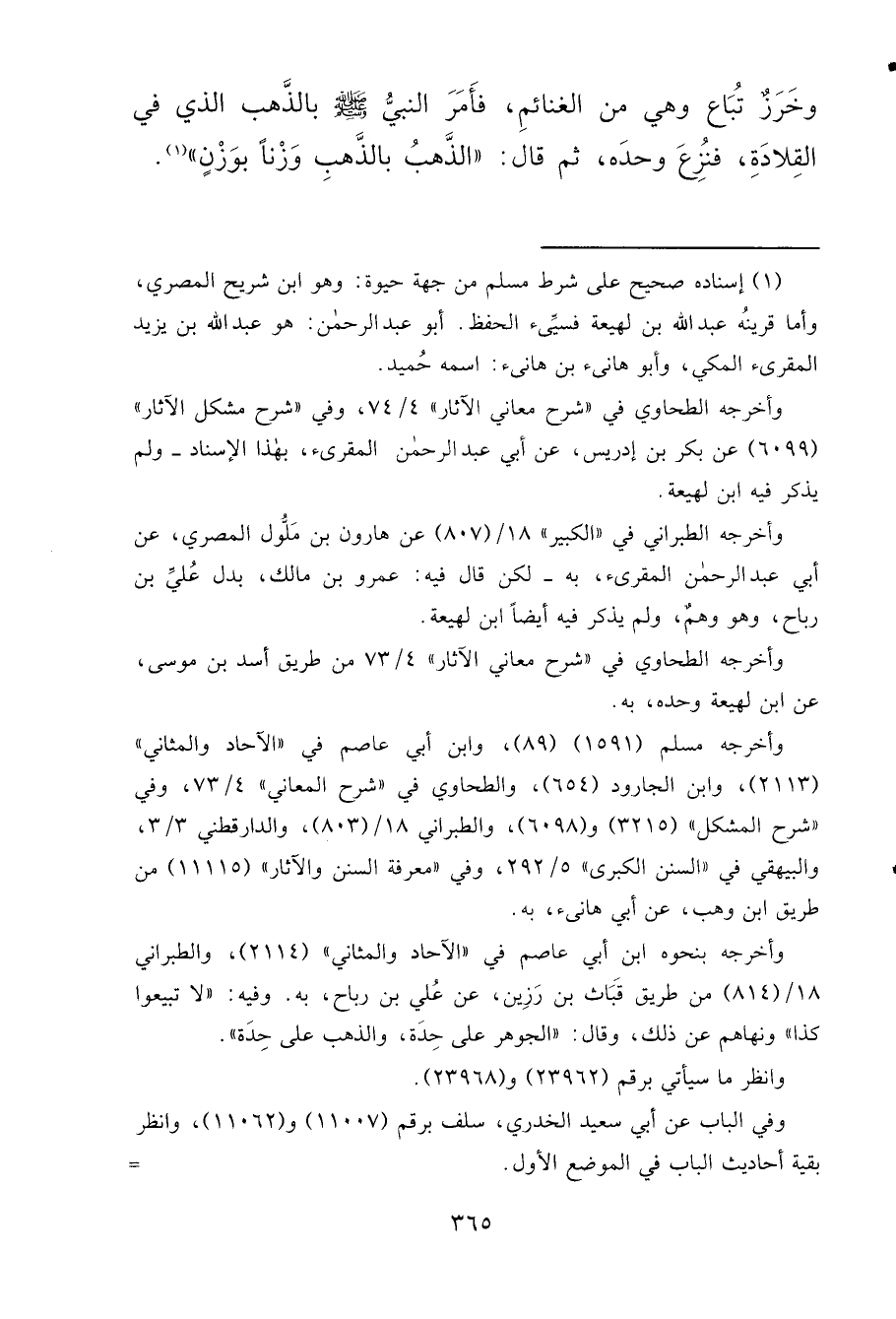 وَخَرَزٌ تُبَاعُ وَهِيَ مِنَ الْغَنَائِمِ فَأَمَرَ النَّبِيُّ صَلَّى اللهُ عَلَيْهِ وَسَلَّمَ بِالذَّهَبِ الَّذِي فِي الْقِلَادَةِ فَنُزِعَ وَحْدَهُ، ثُمَّ قَالَ: " الذَّهَبُ بِالذَّهَبِ وَزْنًا بِوَزْنٍ " (١)