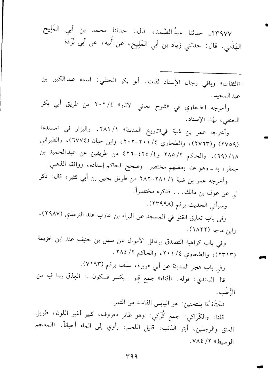 = "الثقات" وباقي رجال الإسناد ثقات. أبو بكر الحنفي: اسمه عبد الكبير بن عبد المجيد.