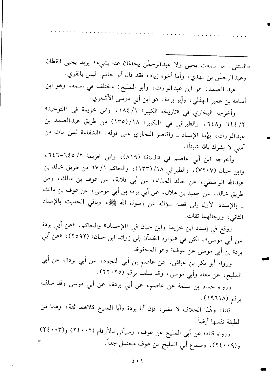 = المثنى: ما سمعت يحيى ولا عبد الرحمن يحدثان عنه بشيء؛ يريد يحيى القطان وعبد الرحمن بن مهدي، وأما أخوه زياد، فقد قال أبو حاتم: ليس بالقوي.