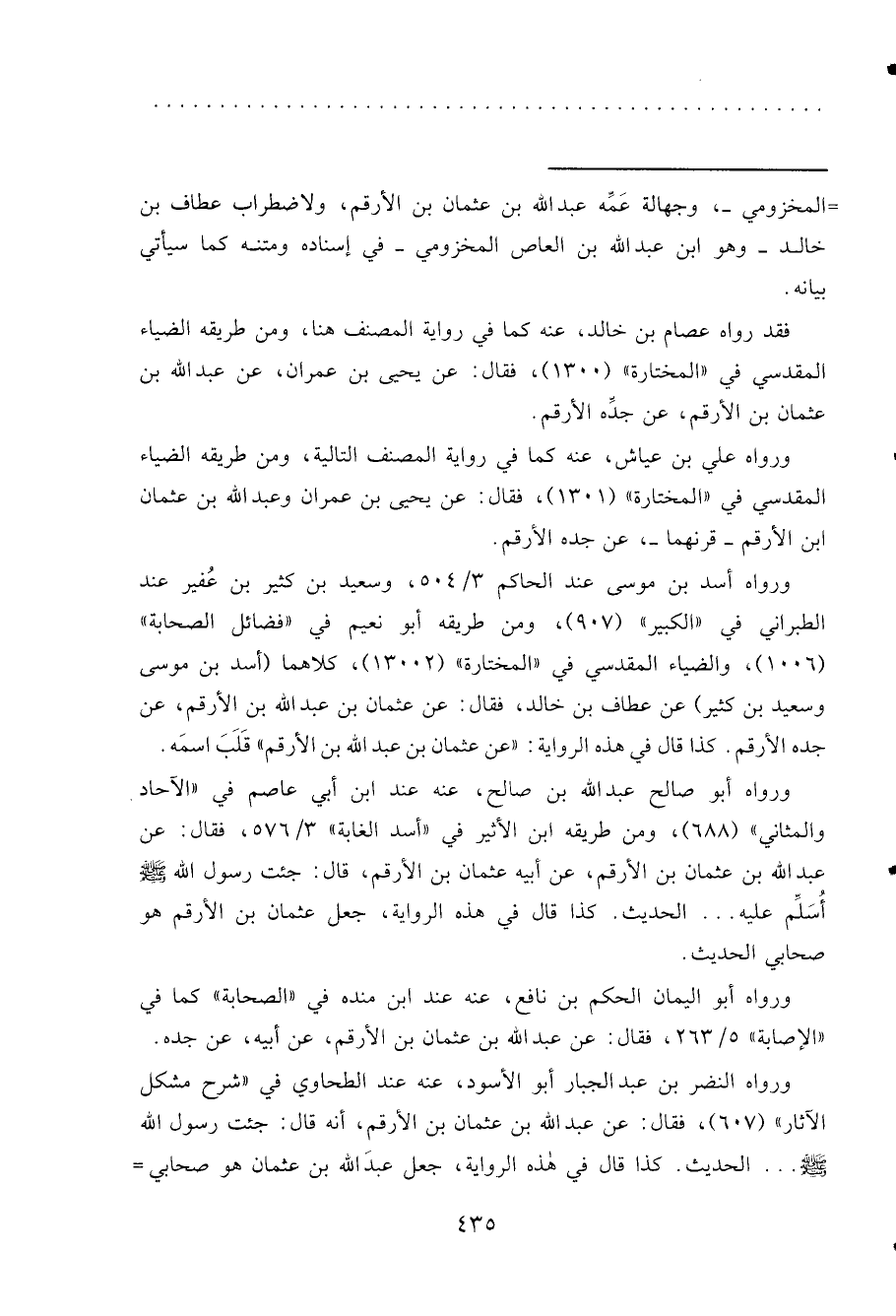 ورواه النضر بن عبد الجبار أبو الأسود، عنه عند الطحاوي في "شرح مشكل الآثار" (٦٠٧) ، فقال: عن عبد الله بن عثمان بن الأرقم، أنه قال: جئت رسول الله صَلَّى اللهُ عَلَيْهِ وَسَلَّمَ ... الحديث. كذا قال في هذه الرواية، جعل عبدَ الله بن عثمان هو صحابي=