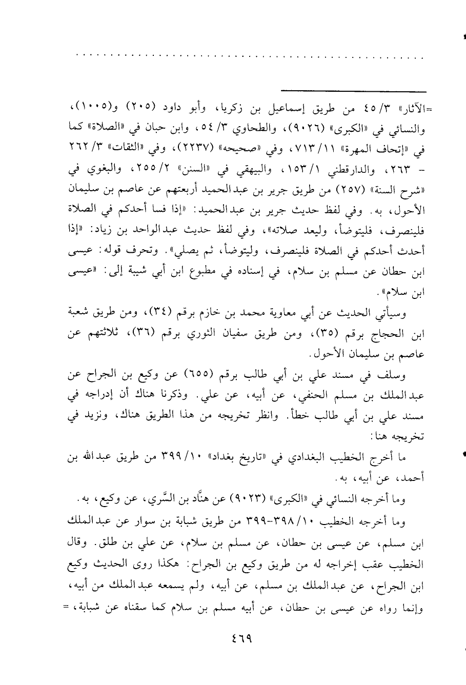 وسيأتي الحديث عن أبي معاوية محمد بن خازم برقم (٣٤) ، ومن طريق شعبة ابن الحجاج برقم (٣٥) ، ومن طريق سفيان الثوري برقم (٣٦) ، ثلاثتهم عن عاصم بن سليمان الأحول.