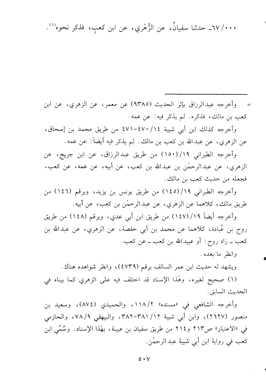 . . / ٦٧ - حَدَّثَنَا سُفْيَانُ، عَنِ الزُّهْرِيِّ، عَنِ ابْنِ كَعْبٍ، فَذَكَرَ نَحْوَهُ (١)