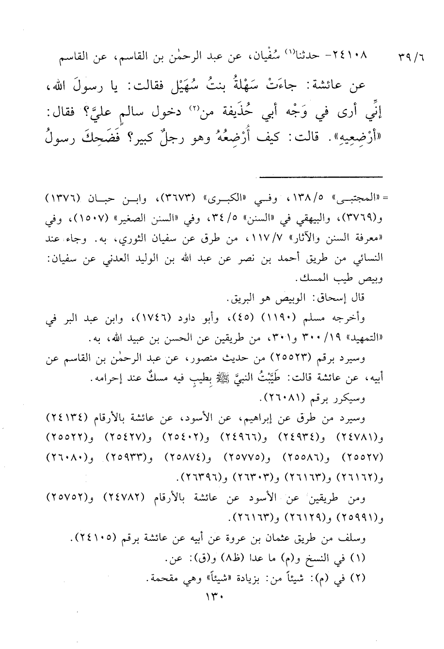 وسيرد من طرق عن إبراهيم، عن الأسود، عن عائشة بالأرقام (٢٤١٣٤) و (٢٤٧٨١) و (٢٤٩٣٤) و (٢٤٩٦٦) و (٢٥٤٠٢) و (٢٥٤٢٧) و (٢٥٥٢٢) (٢٥٥٢٧) و (٢٥٥٨٦) و (٢٥٧٧٥) و (٢٥٨٧٤) و (٢٥٩٣٣) و (٢٦٠٨٠) و (٢٦١٦٢) و (٢٦١٦٣) و (٢٦٣٠٣) و (٢٦٣٩٦) .