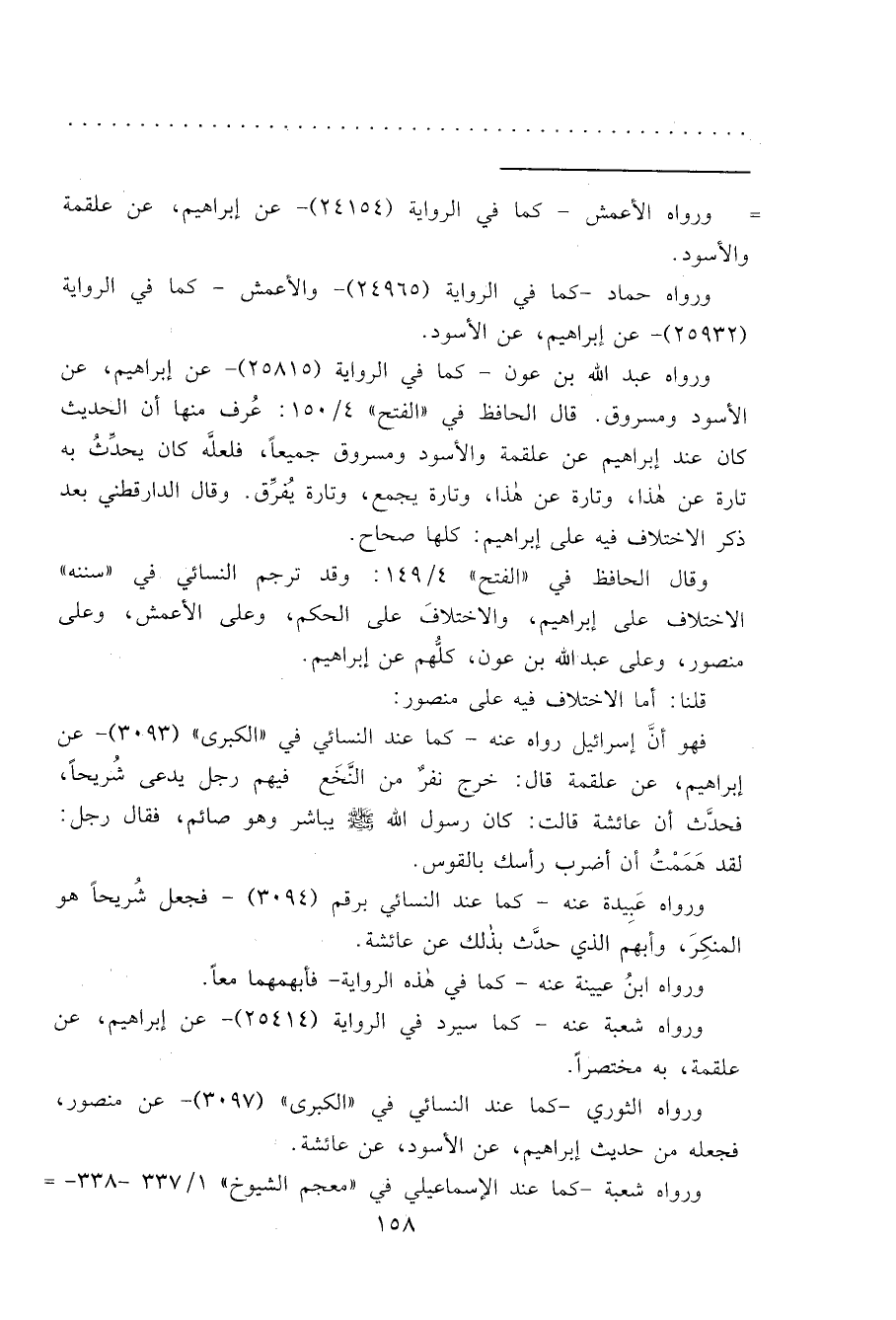 وقال الحافظ في "الفتح" ٤/١٤٩ وقد ترجم النسائي في "سننه" الاختلاف على إبراهيم، والاختلافَ على الحكم، وعلى الأعمش، وعلى منصور، وعلى عبد الله بن عون، كلُّهم عن إبراهيم.