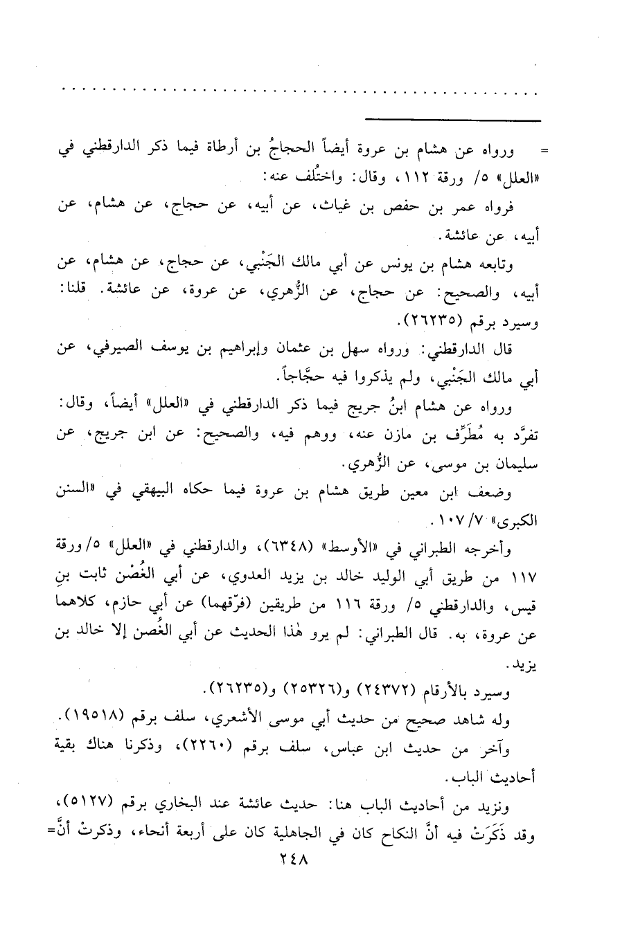 ورواه عن هشام بن عروة أيضاً الحجاج بن أرطأة فيما ذكر الدارقطني في "العلل" ٥/ورقة ١١٢، وقال: واختُلف عنه: