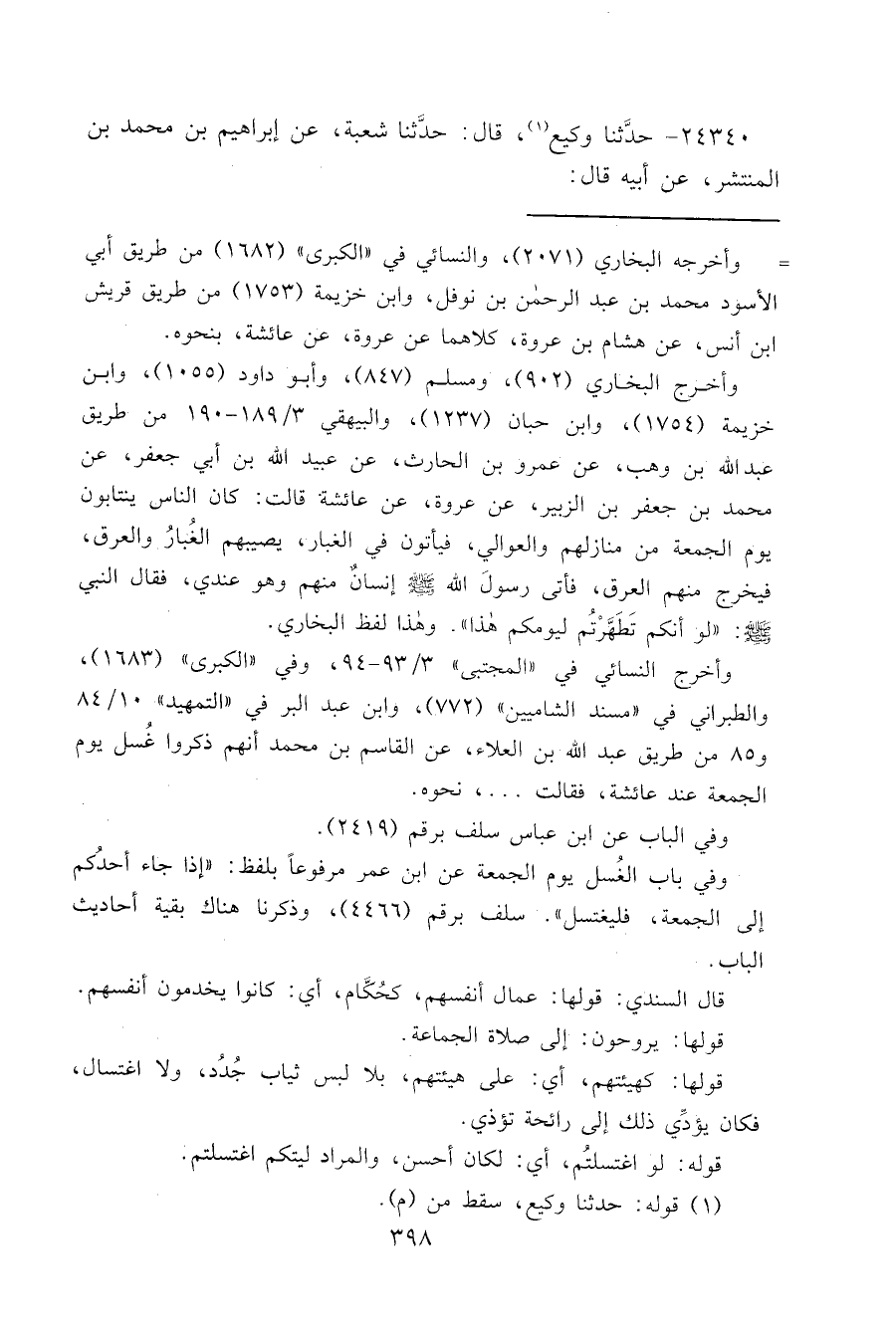 ٢٤٣٤٠ - حَدَّثَنَا وَكِيعٌ (١) قَالَ: حَدَّثَنَا شُعْبَةُ، عَنْ إِبْرَاهِيمَ بْنِ مُحَمَّدِ بْنِ الْمُنْتَشِرِ، عَنْ أَبِيهِ قَالَ: