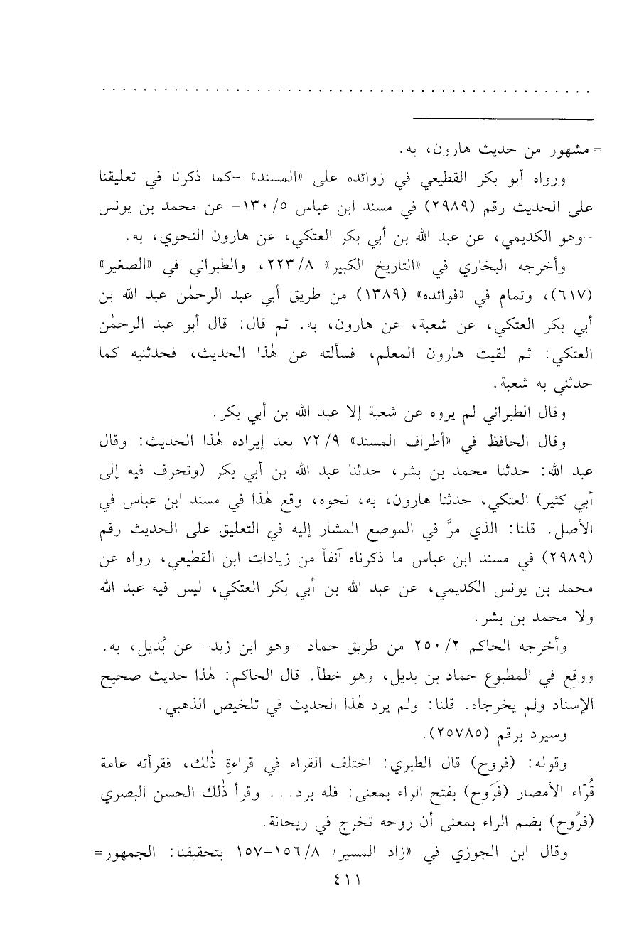 ورواه أبو بكر القطيعي في زوائده على "المسند"- كما ذكرنا في تعليقنا على الحديث رقم (٢٩٨٩) في مسد ابن عباس ٥/١٣٠- عن محمد بن يونس - وهو الكديمي، عن عبد الله بن أبي بكر العتكي، عن هارون النحوي، به.